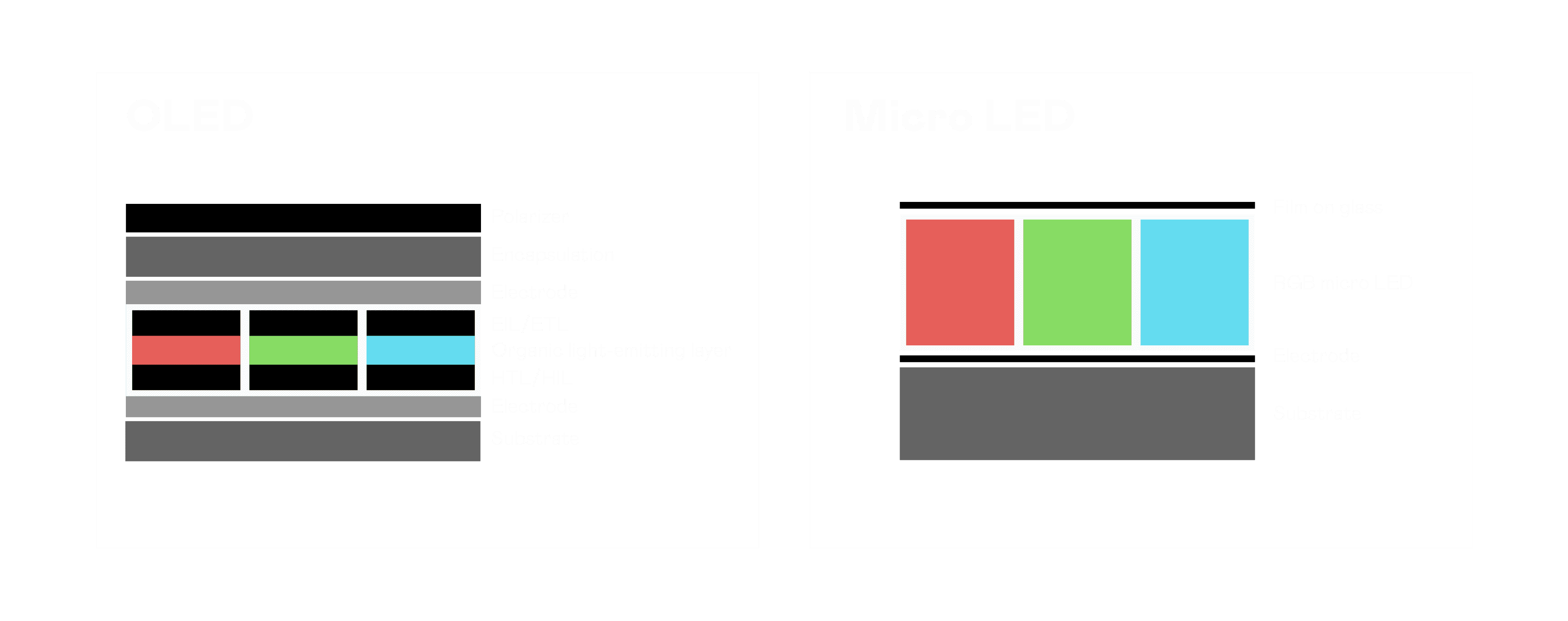 以 LED 做为显示画素,,,可让 LED 的发光效率发挥到极致,,,,从而让显示器具备优异的亮度表现,,,不论是在户外或室内,,,均具备出众的显示效果。。同时,,,,与使用有机材料的 OLED 相比,,,LED 具备更稳定、、寿命更长的特性,,,,不仅不会有画面烙印问题,,而且更不容易出现故障、、坏点。。。。