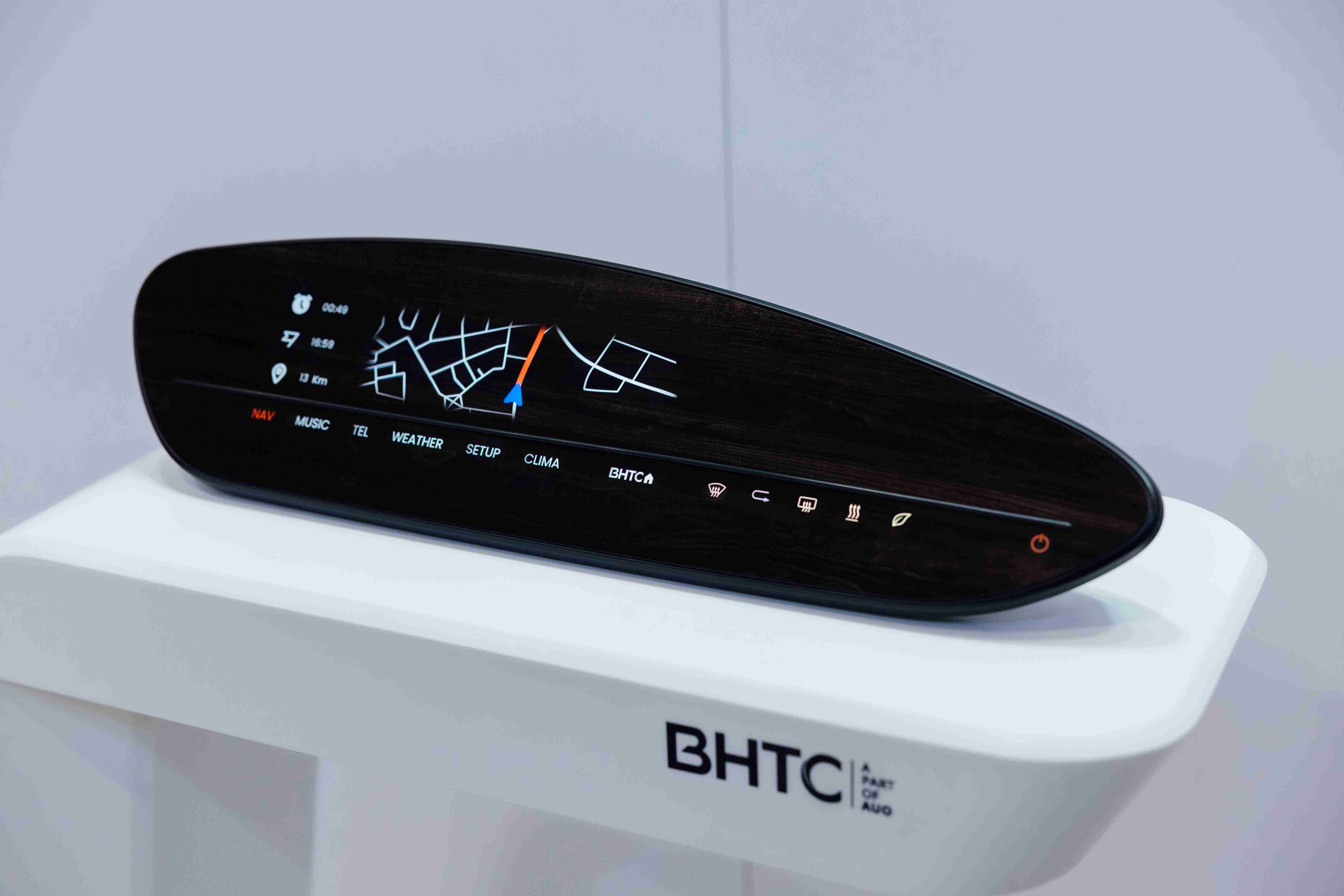 BHTC的木纹车用显示器(Display Behind Wood)将无缝木质表面与显示器结合后,,可以融入车内设计中,,提供驾驶优质的视觉效果,,,,加上其无边框的设计和亮度调控,,,,创造更优质的车内体验。。
