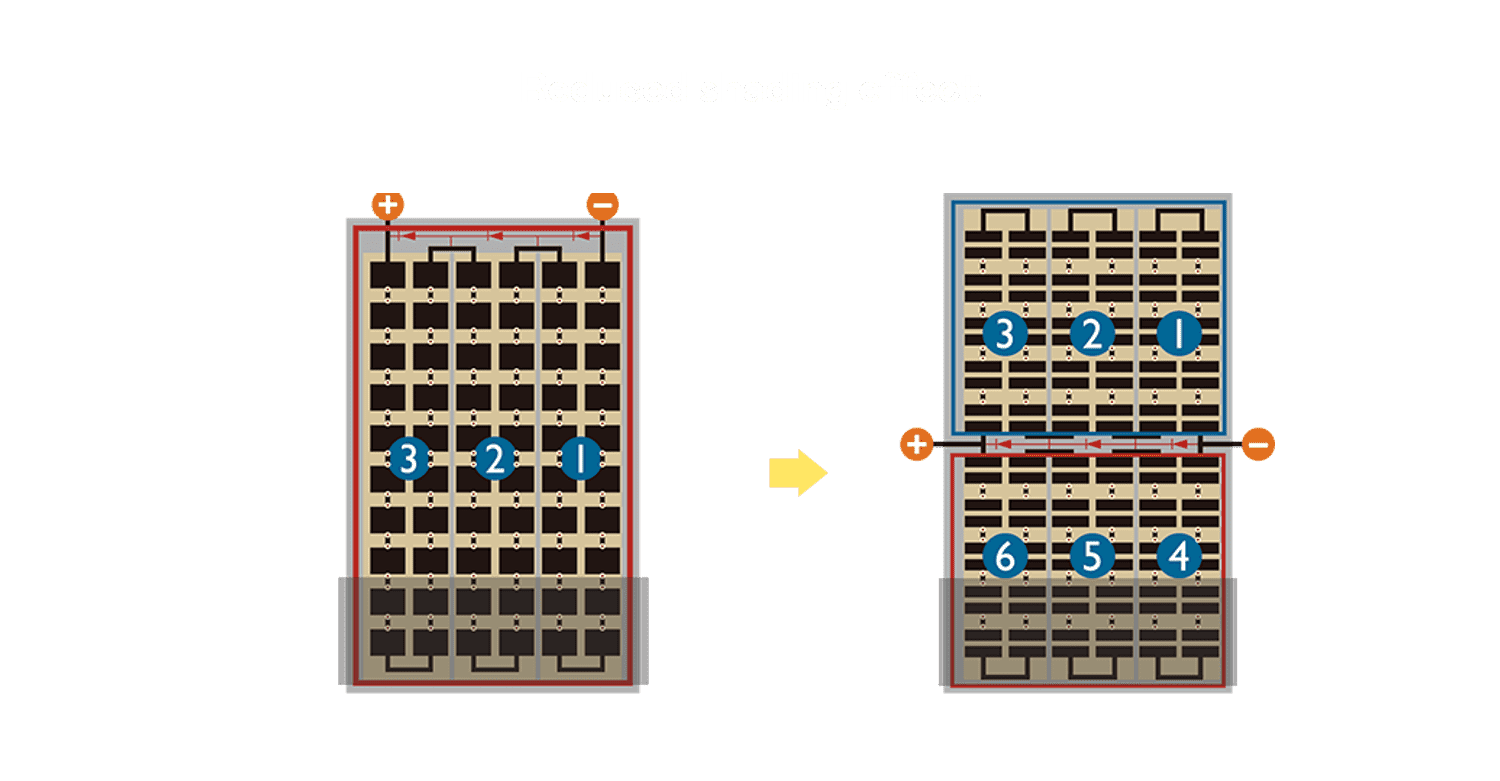 - 结合半切电池,,,,降低遮阴影响、、、提升模组抗隐裂能力、、、并减少电阻损耗,,,进一步提升模组发电效能。。。。
